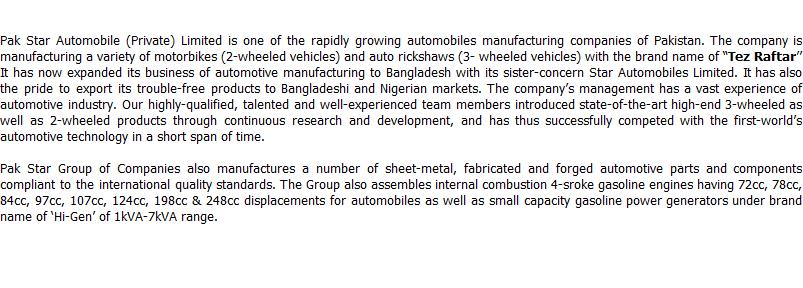 ABOUT US - PAKSTAR AUTOMOBILE (PVT.) LTD.